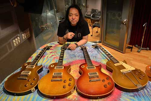 The sound of blues rock, I have to say, is the Les Paul. So I only used Gibson for the guitar parts. And I tried to record the best sound of each guitar as much as I could. At the same time I used as many guitars as I could in terms as variety, such as Goldtop, Sunburst and LP Junior. I borrowed an original Explorer, too, and it really gave a nice dry American rock sound.